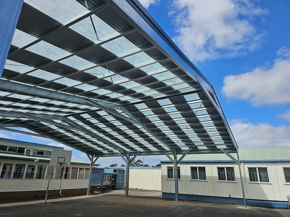 Open Arena 11 Feb Written By Scott Coppleman Open arena - 18m x 16m with 4.8m to the Eaves. Clad in Colorbond Deep Ocean Scott Coppleman